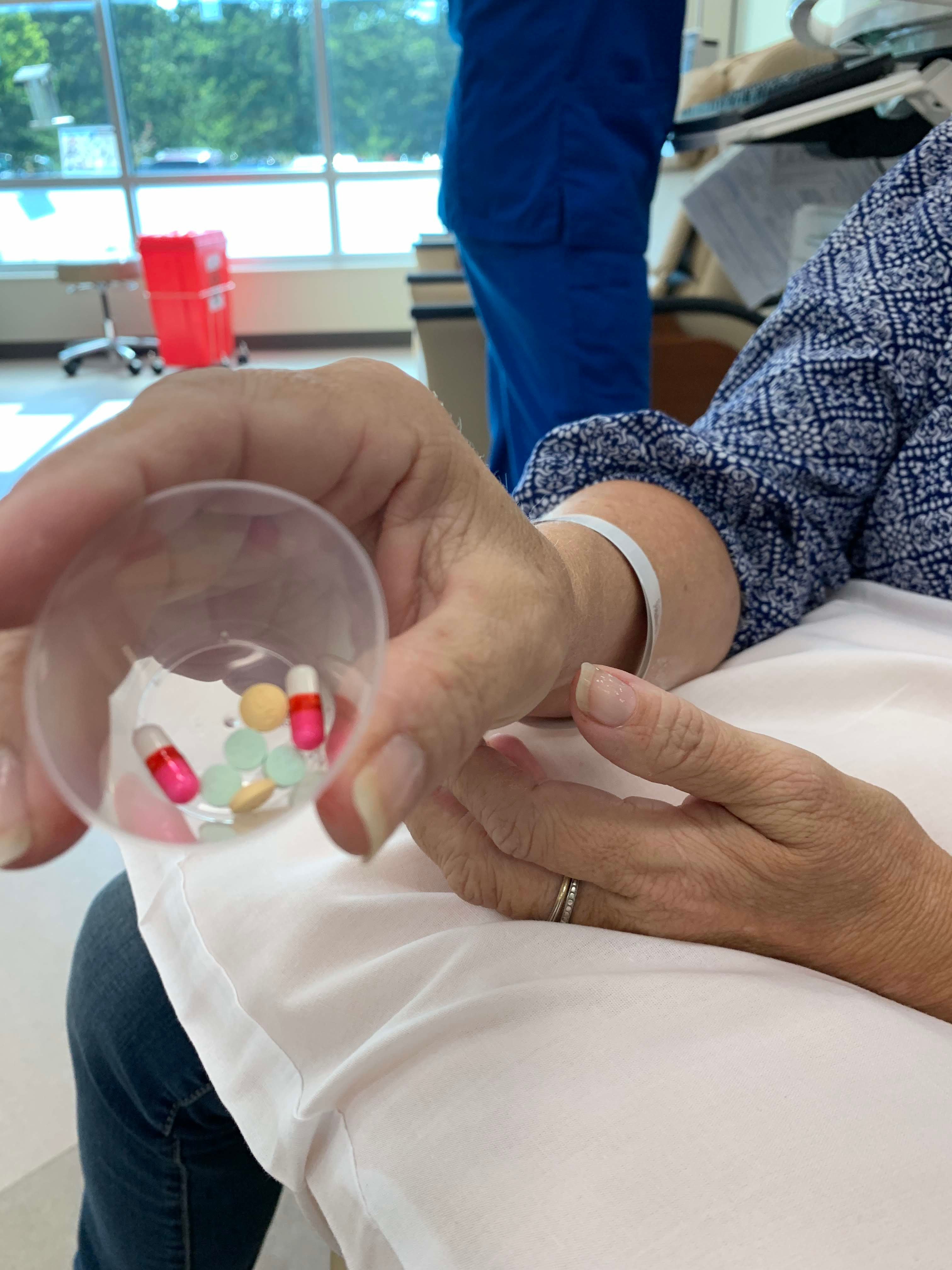 Mom is settling into the new normal with her usual grace and sense of humor. You should read her thoughts on the fact that her urologist has missed his true calling as an artist. I almost peed my pants laughing (pun absolutely intended). But early on in the Chemo process, I got to go visit the cancer lounge and document what all goes on.