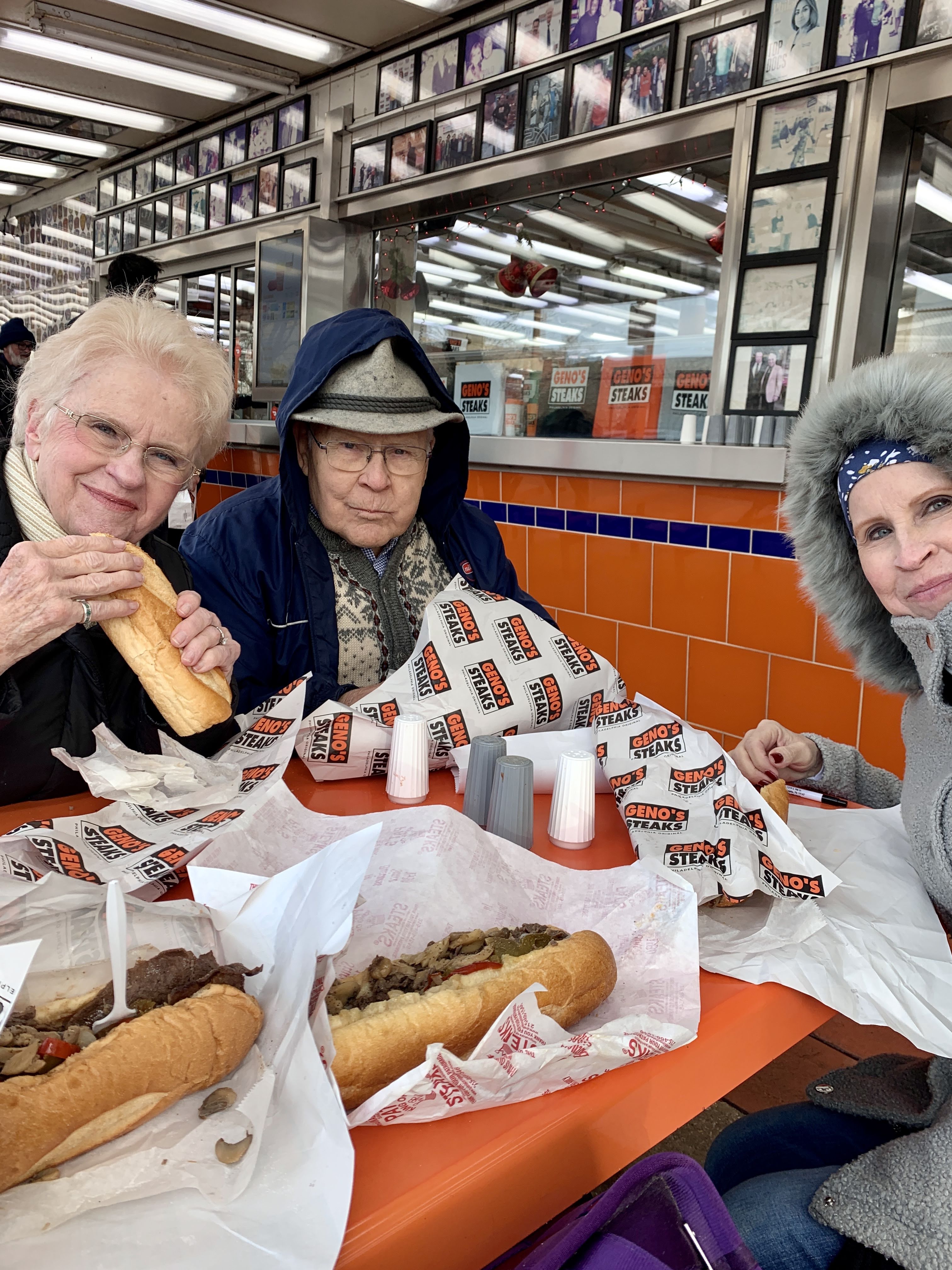 Friday night I’m so glad I told my dad that the next day I was on a mission to find an authentic Philly Cheese steak Sandwich. Lucky I did, because he was able to tell me about Pat’s and Geno’s, two of the most well known cheese steak joints in Philly. They are directly across the street from each other and bitter rivals. I told him I’d get one sandwich from each place and do a side by side comparison…you know, for science. Provolone with peppers, onions, and mushrooms. So tasty! Geno’s meat was better, but I like how Pat’s diced up their meat into smaller pieces.