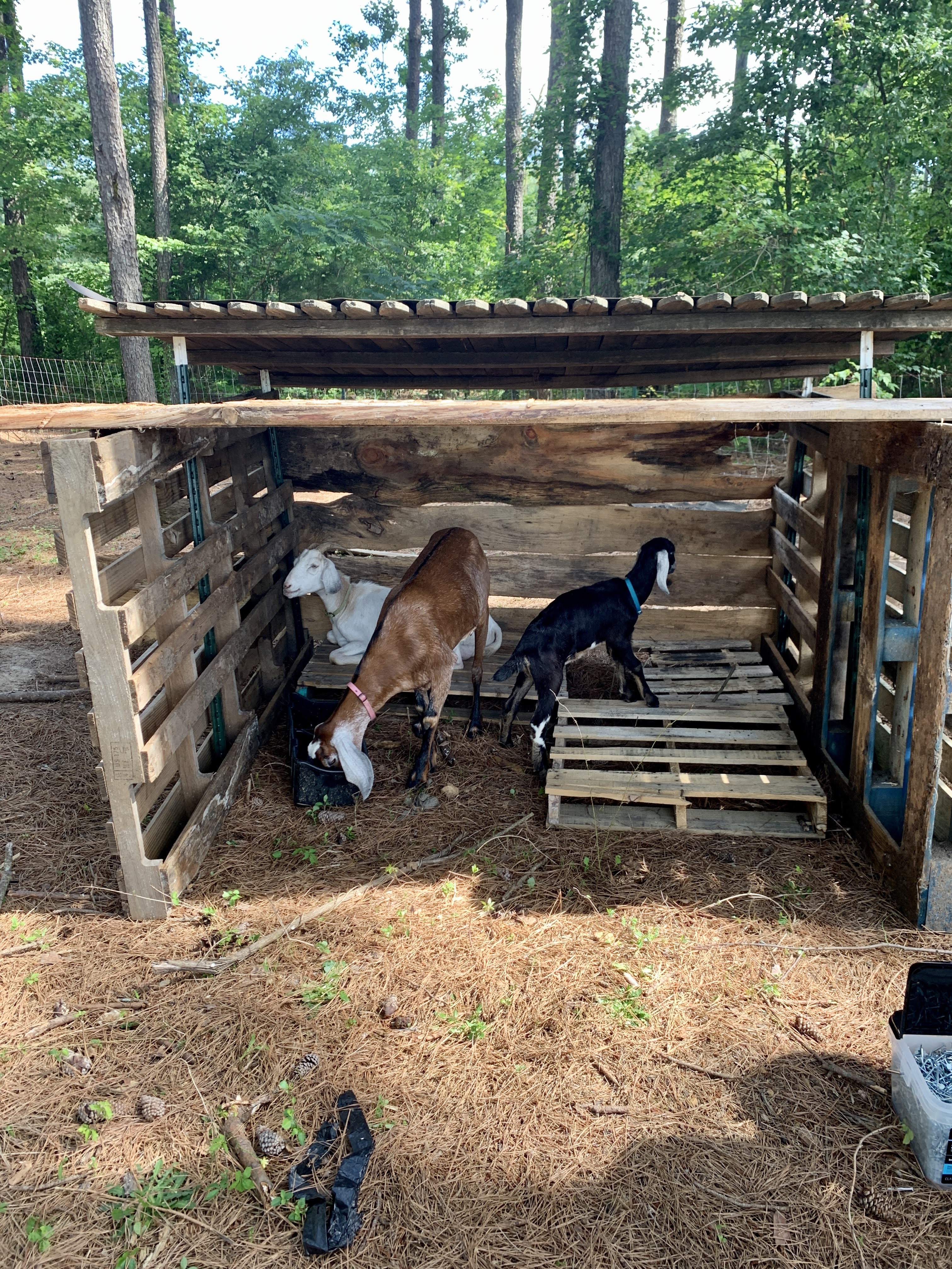 Now that balance is restored, onto business. I’ve been spearheading some improvements for our goaties: a new shelter, new feeders, a jungle gym, and fencing off some useless woods for a whole new pasture.