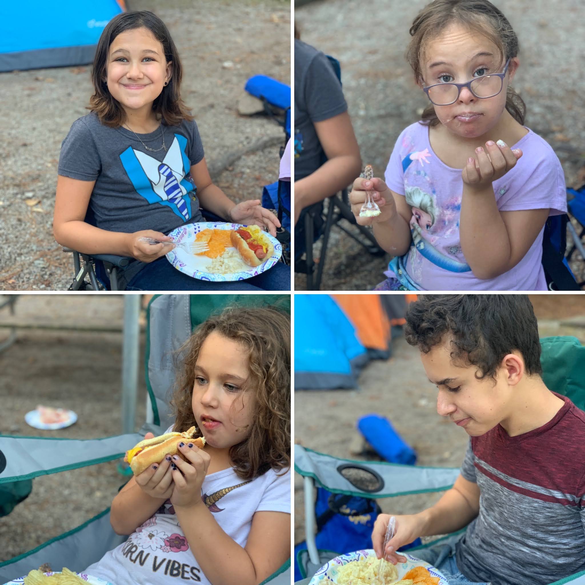 Fire roasted hot dogs, potato and macaroni salad, and chips. The height of haute camping cuisine.