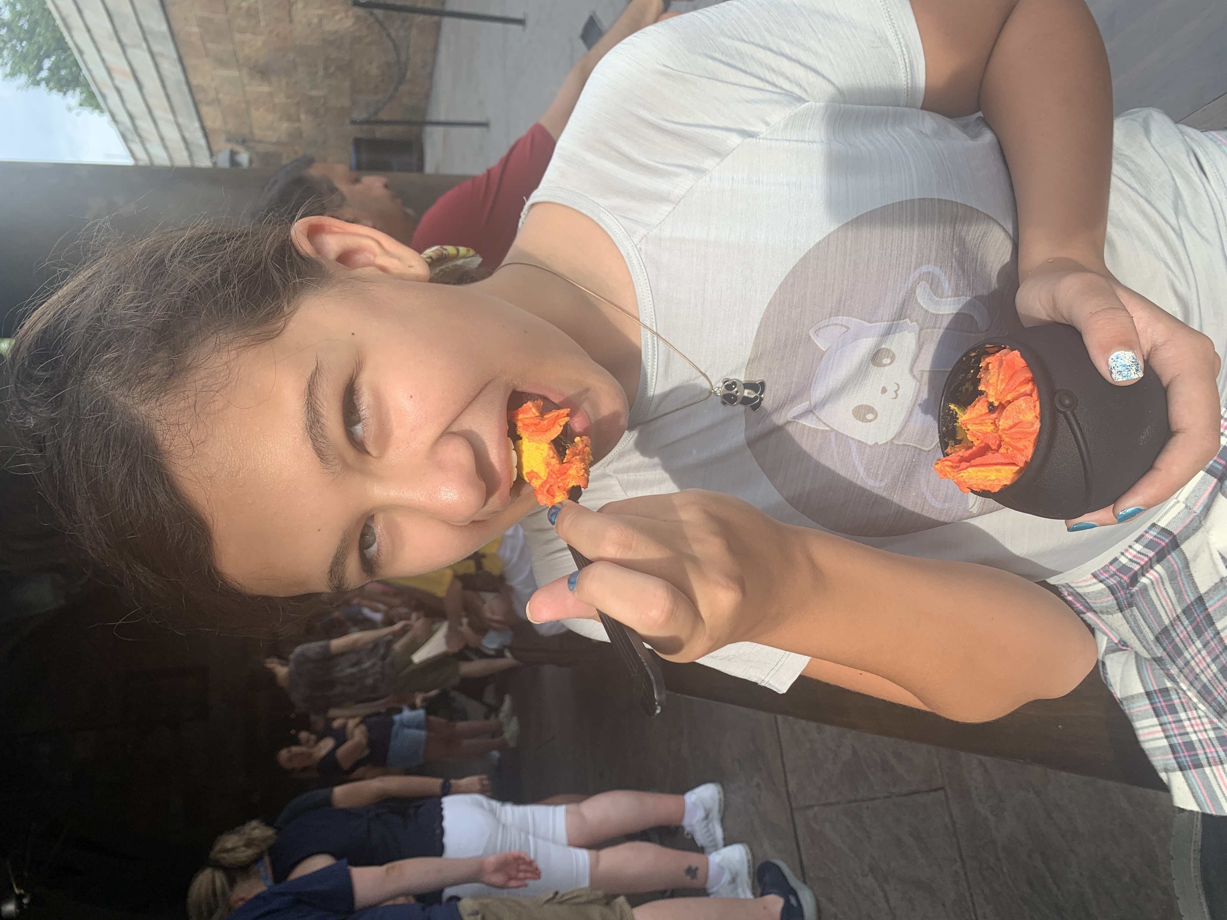 We survived and on that adrenaline high we entered the Harry Potter bubble. Naomi doesn’t do purses…she does satchels. Her go to was a bag she hand embroidered and it served its purpose well but was on its last threads. She was ready for an upgrade, and naturally, Ravenclaw for life. The park theming was just as brilliant as I remembered and we went through slowly, taking in every detail.