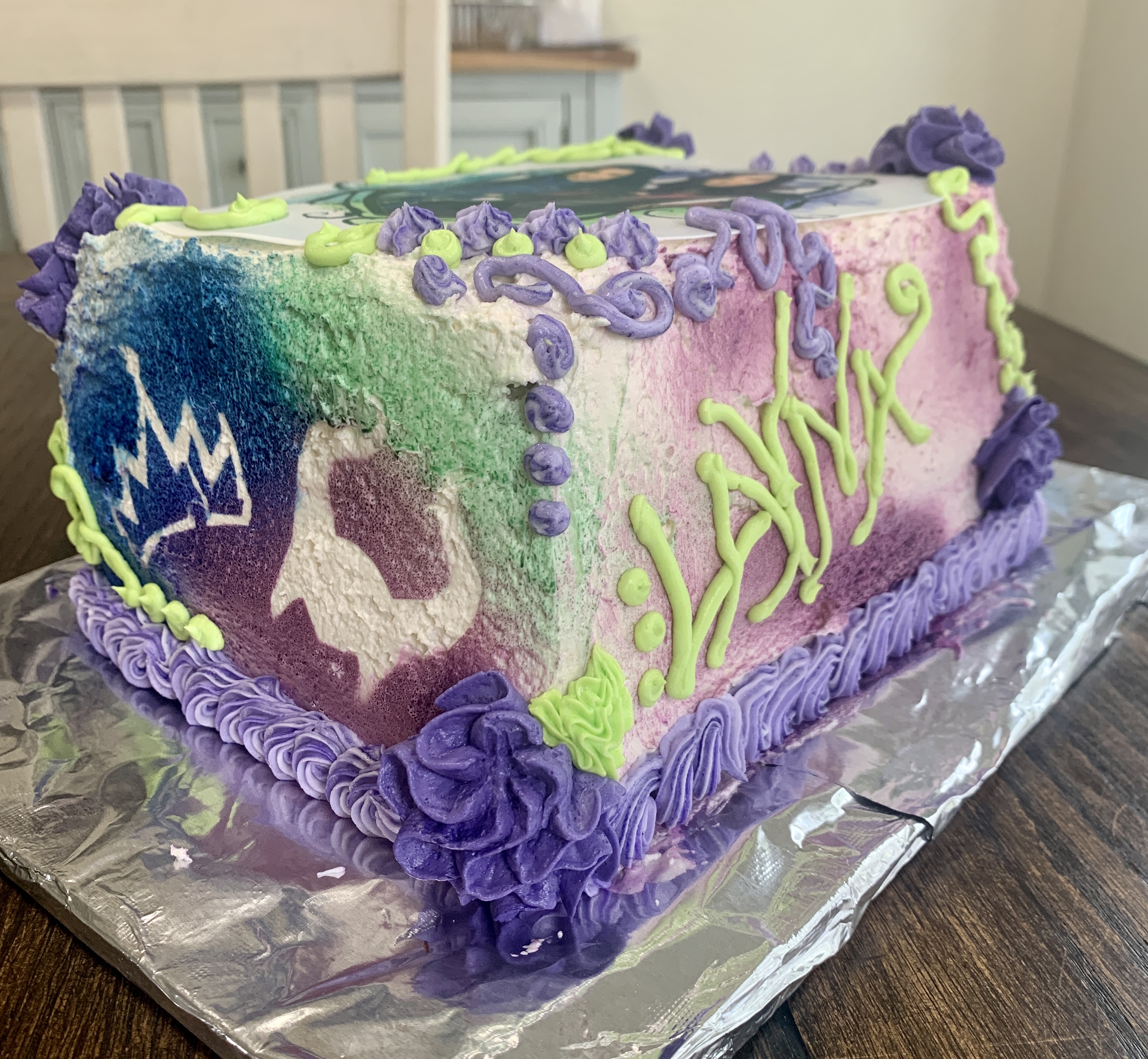 I’ve probably mentioned how hard it was on me that for a long time she didn’t have opinions and preferences. It’s all good now, she is a girl who knows her mind! But I still find myself really wanting to maximize anything that is uniquely her. Luckily her birthday party theme was that and more. Layna Loves (with a capital L) the Disney Descendants franchise. All of us know the lyrics to every song and I’m pretty sure Garyn would include a few on a “guilty pleasures playlist”. Plus it meant I got to do a graffiti cake with edible spray paint!