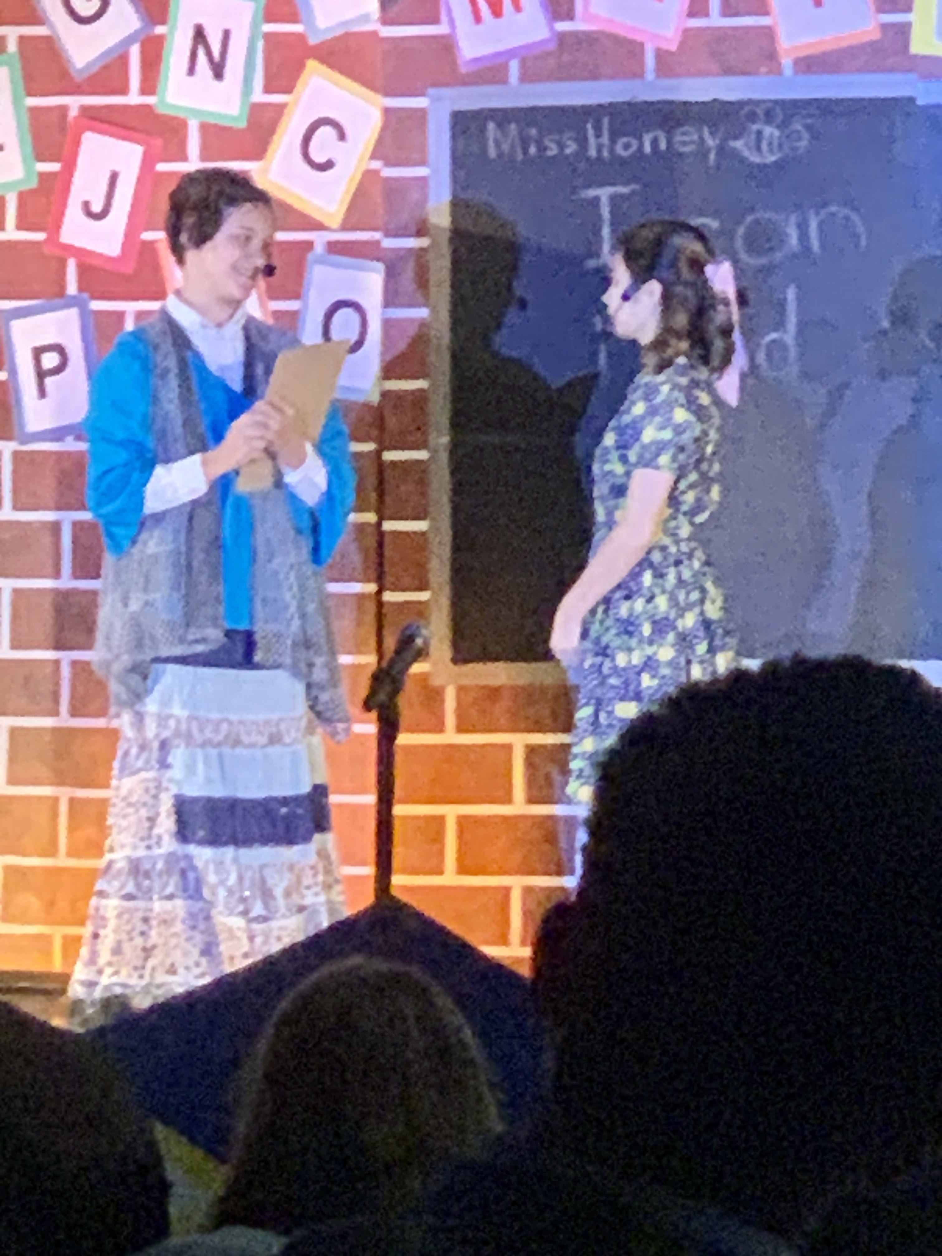 Were you a theater kid? Did you know the theater kids? I was a debate nerd, but I knew a lot of the theater geeks. Now I’m all grown up and have one of my very own. Naomi discovered tech crew at the start of the school year, which was great because their fall show wasn’t open to middle school students. All that changed in the spring when any student could audition for their production of “Matilda Jr.”