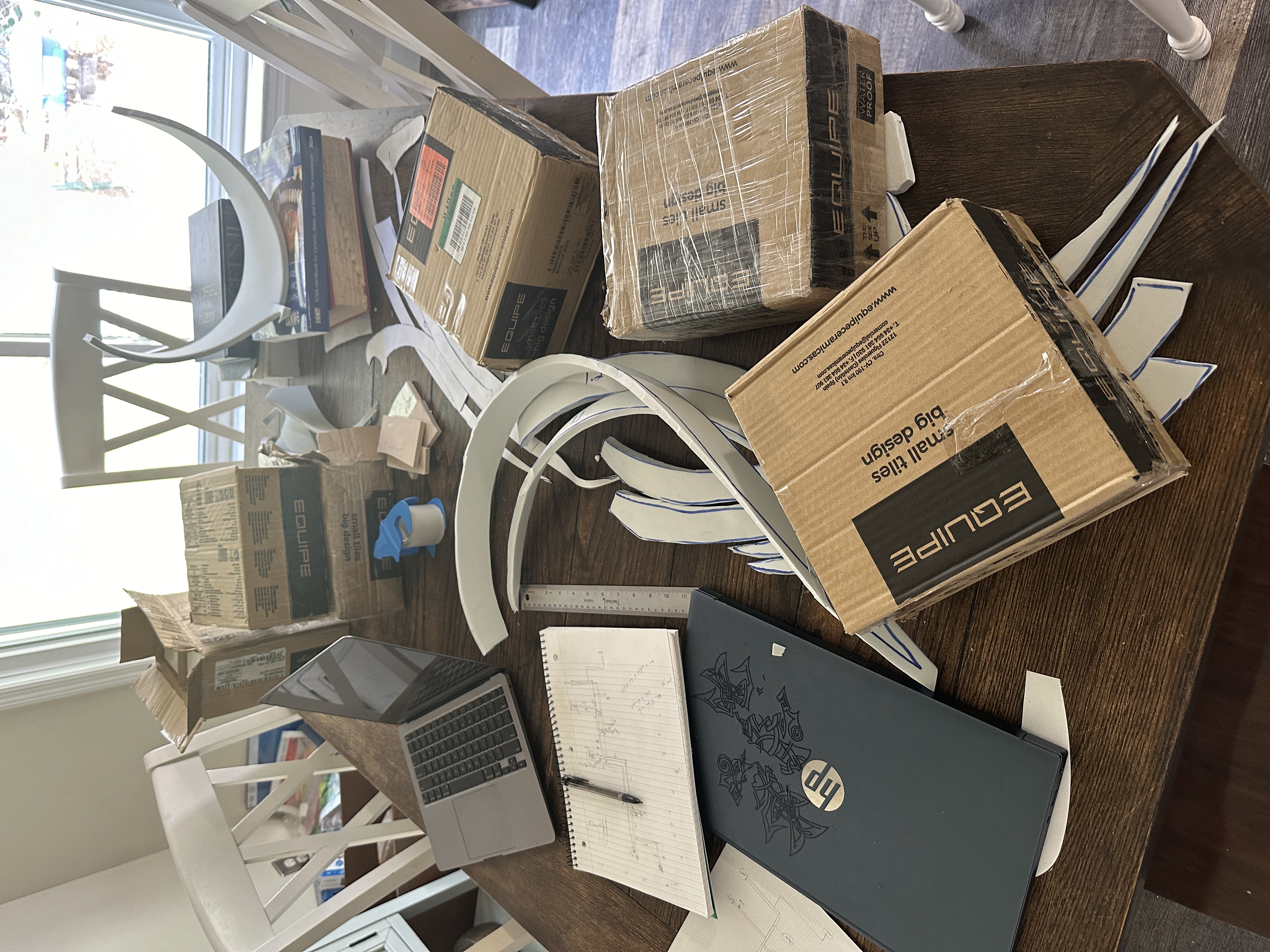 Now that you’ve seen something of a progression, here’s what we did. Naomi cut the material (two separate fabrics) and I sewed them together for the wing membrane. Then I cut all the skeletal ribs and white spike out of high density craft foam, but I cut out two of everything and glued them together to get the thickness I needed. After they were all glued and joined together, I started to sculpt them. They needed to be rounded off to look more organic so I cut away with an exacto knife and then polished the foam with a dremel. Once that was done I cut a channel in the back of them and glued in a steel rod, bent to the contours of the wings. Red was spray painted on as my base color. Material was glued on and then I painted them by hand. In some of the pictures you can see that the steel rod sticks out of the bottom of the wing skeleton. That slots into a copper tube encased in a harness that I made out of mold-able plastic. There are pieces that are held by magnet to cover the harness over her shirt. Naomi can wear the harness under her shirt and the wings can rotate freely in the copper. The overall effect is wings that look and move as if they were real. Not for the first time, I wish I could figure out a way to put video’s on my blog! Naomi was thrilled with the end result and was absolutely the hit of her school’s Fall Festival. I don’t think she even knows what a huge hit she’ll be at Ren Faire in a few weeks. Oh yeah! and Trick or Treating with cousins! And I have to say, I’m pretty pleased myself with the compliments the wings are getting. I’ll add: high-density foam, mold-able plastic and metal pipe/tubes to my costume repertoire.
